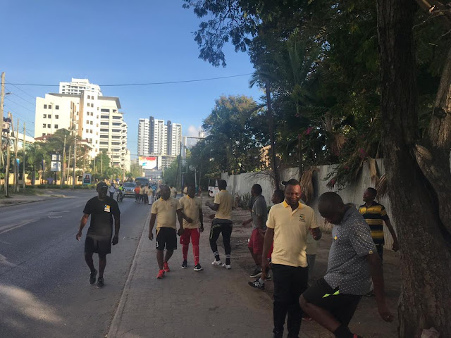 NHC Makao makuu walijitokeza kufanya matembezi yaliyoanzia jengo la makao makuu ya NHC Kambarage House kuelekea Barabara ya Barack Obama hadi Palm Beach na kuingia Barabara za Ali Hassan Mwinyi, Ohio, Kivukoni Front, Luthuli na baadaye kuelekea kwenye eneo kutakakokuwa na mazoezi ya viungo katika eneo la Sea View Beach (Dengu Beach).